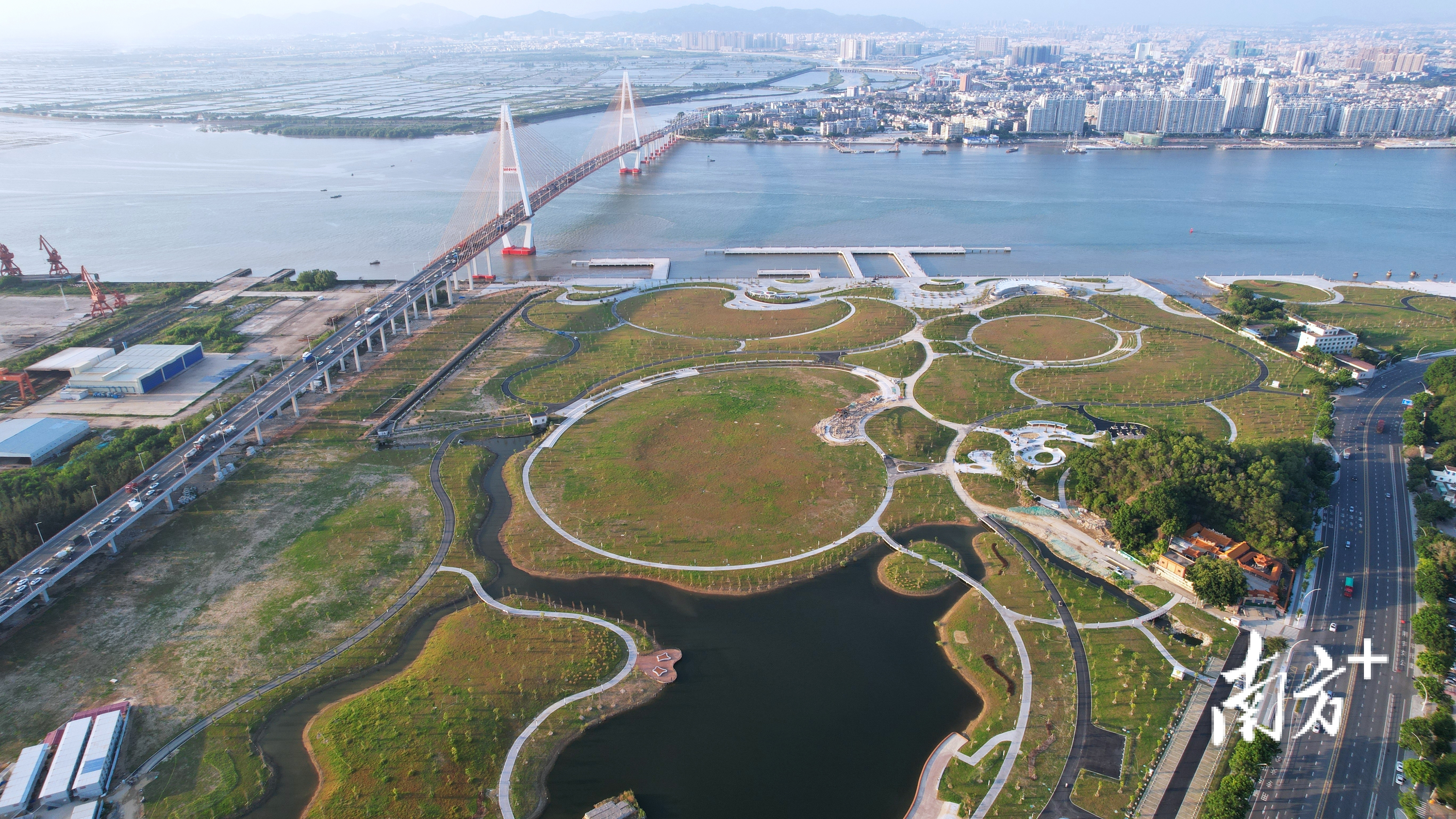 在汕头礐石大桥南侧,南滨公园建成洞开。