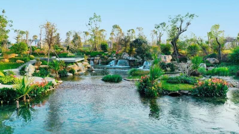 坐落在广州白云区国外健康城的健康城清水厂,是一座全地埋式清水厂,地下17米深处埋藏着一座浑水处理工场,加盖全禁闭完成沿途浑水处理过程,阻绝浑水泄露、臭气外溢、杂音扰民;大地是岭南格调的湿地公园,四时花草姹紫嫣红,虫鸣鸟叫、水清鱼乐,工业园区变为“住户的后花圃、城市的恬逸线、花鸟鱼虫的天国”。