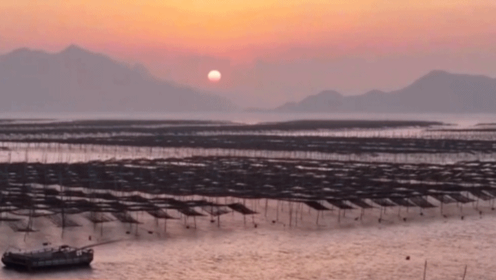 在福建宁德霞浦紧迫的紫菜衍生区