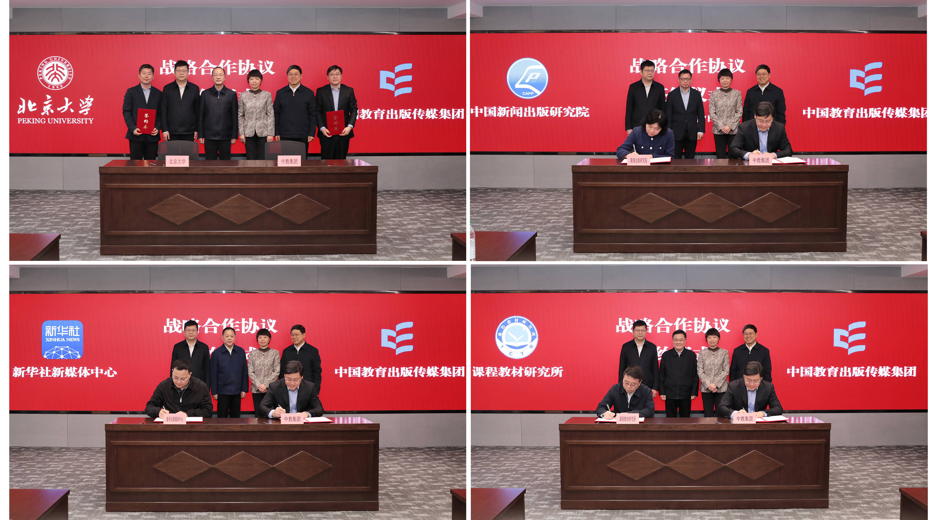 签署战术融合契约现场。(拼版相片)新华社发茶话会时分篮球投注app,中国训导出书传媒集团差别与北京大学、新华社新媒体中心、中国新闻出书连络院、课程课本连络所签署战术融合契约。连络院学术委员会委员和与会大家还围绕课本成就提质、数字出书创新、大祖传播赋能等问题开展潜入换取辩论。